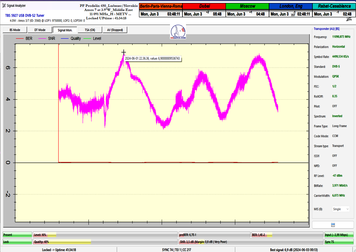 ►►Amos 3 at 4.0°W-Middle EastContinuous signal monitoring / Nepretržitý signálny monitoring