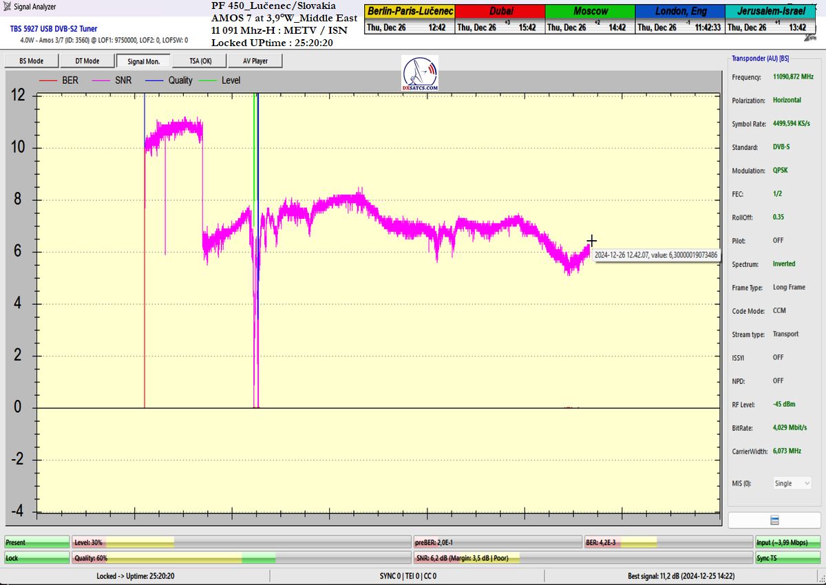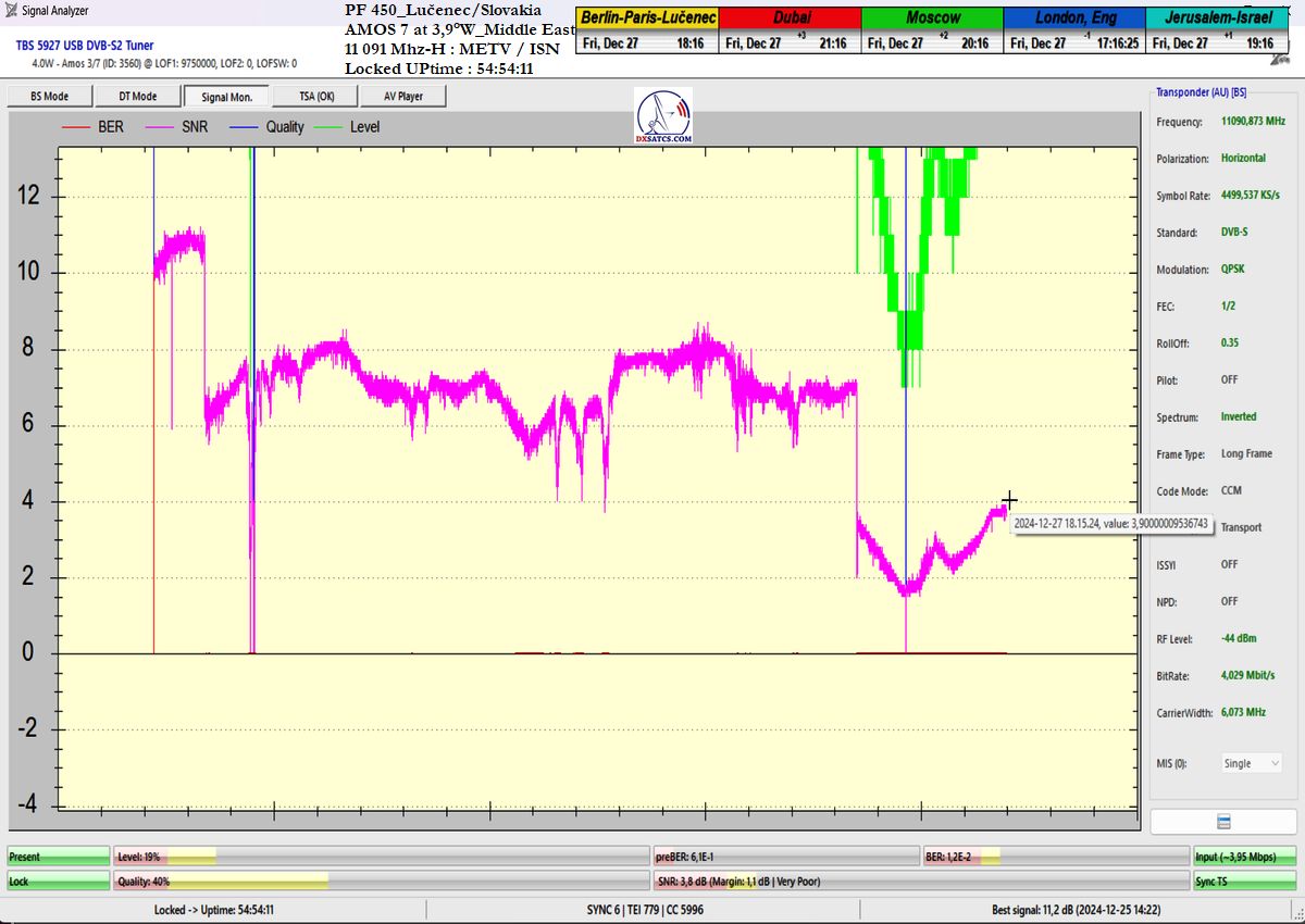 dočasného výskytu výkonovej anomálie,tak typickej pri príjme z družice Amos 7_Middle East beam. ►Teraz dokážem že moje tvrdenia sa zakladajú na nespochybnitelných dôkazoch.V poradí druhý výskyt výkonovej anomálie za 5 dní od 25 do 30.12.2024.