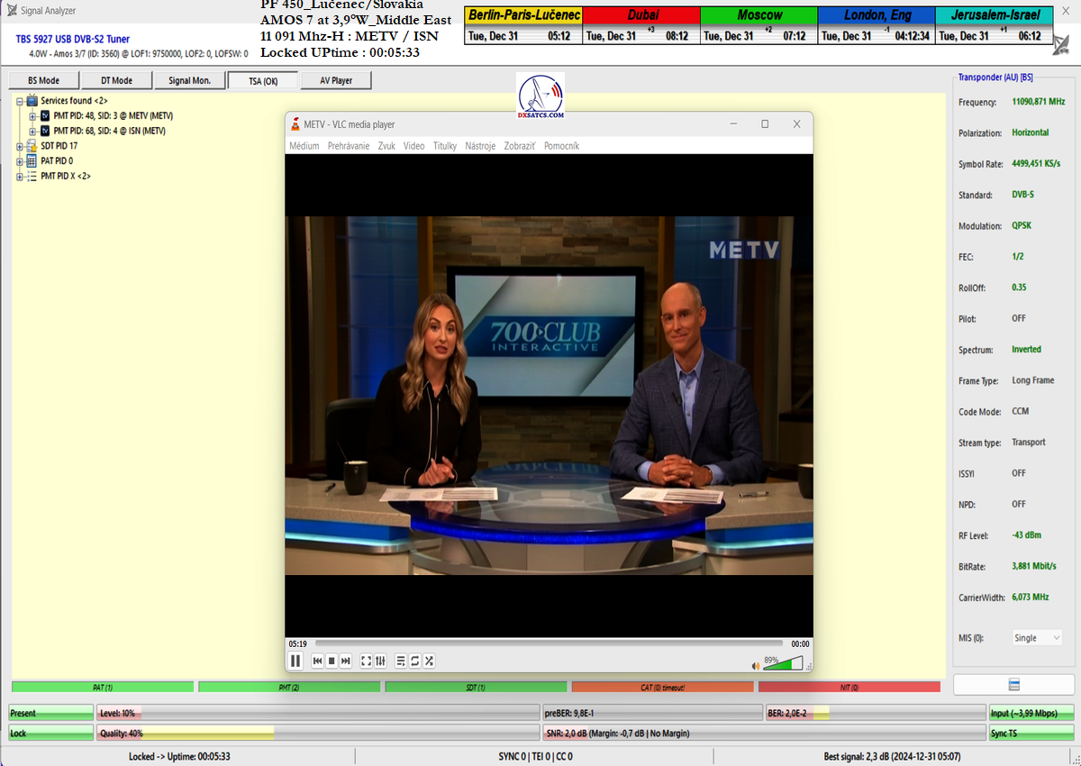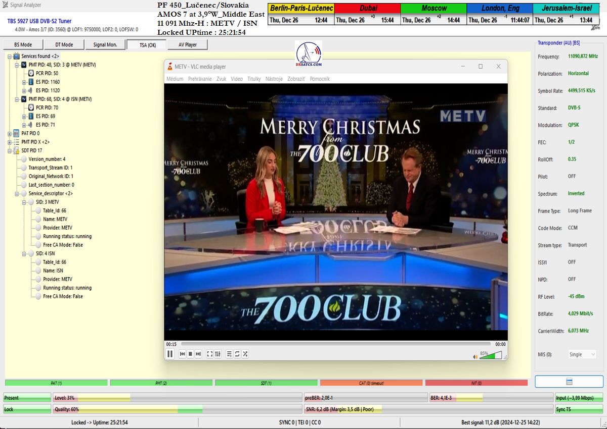 -špička kvality oscilovala od 10 do 11+ dB dňa 25.12.2024- -plná stabilita príjmu bez jedinej pixlácie aj pri minimálnej úrovni kvality od 1,9 do 2,5 dB-