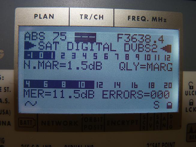ABS 1 at 75.0°E - A+B footprint : analysis of the spectrum and quality of the reception