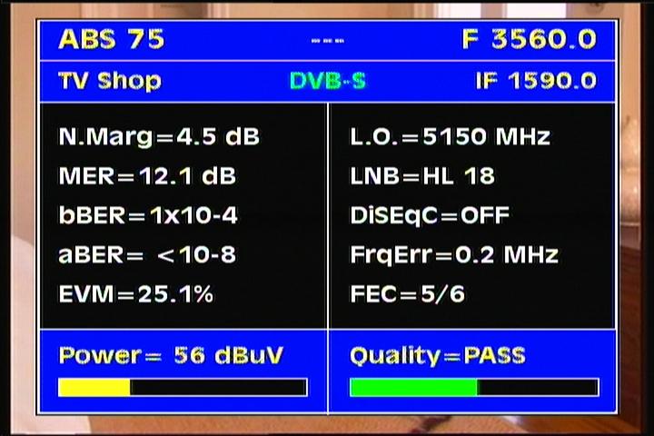 ABS 1 at 75.0°E-B footprint : 3 560 V packet CTH Cable Thai Holding-qualitative peak MER=12.2 dB
