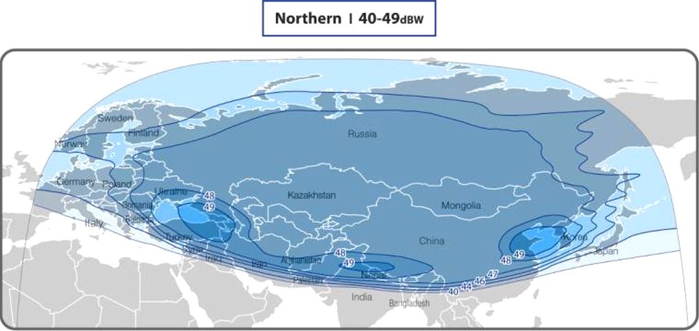 range of spectrum : 12 551-12 598 MHz      coverage area:Asia,ME,parts of Africa+Europe