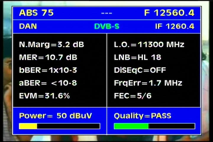 ABS 1 at 75.0°E : relative quality/ southern beam