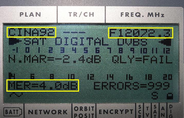 first time I managed to define the quality of income data for the next carrier at frequency f = 12 072 MHz,vector L.