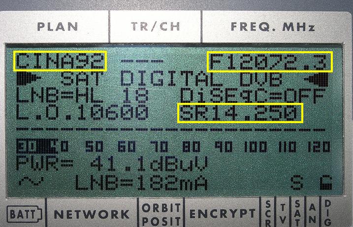 19th September 2009 I am at frequency f = 12 170 MHz to define the parameters of the new data transmission and for the