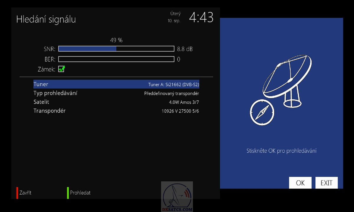 Autorova poznámka č.3 : Na rozdiel od španielskeho digitálneho analyzátora Televes H60,ktorý aspoň krátkodobo zobrazil reálnu hodnotu kvality MER, taliansky analyzátor spektra Rover Instruments DM164HD (3 719 EUR) hlásil stav 0,čo znamená dosiahnutie len šumového prahu bez akejkoľvek rezervy