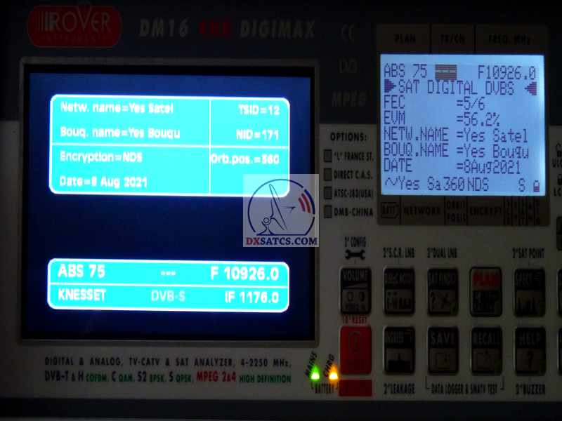 >analýzu príjmu s talianskym analyzátorom Rover z referenčnej frekvencie f0 paketu YES Izrael som vykonal dňa 8.8.2021 v Lučenci <
