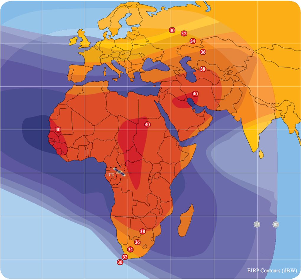 Amos 5i at 17.0°E - pan african footprint : 3 997 H DVB-S2/8PSK NGB CH1