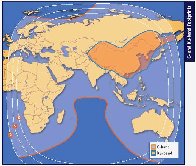 Apstar 2R at 76.5°E - Global footprint : 3 760 H UBI World TV Australia