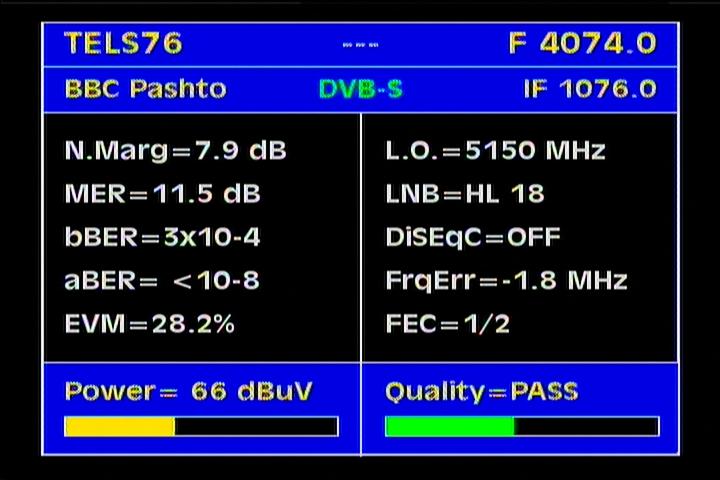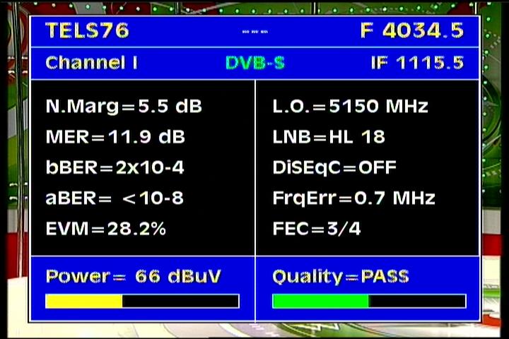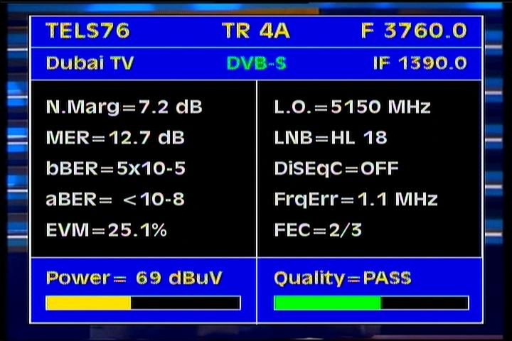 - Apstar 2R at 76.5°E : quality measurement results in the reception spectrum of H and V wave vector -