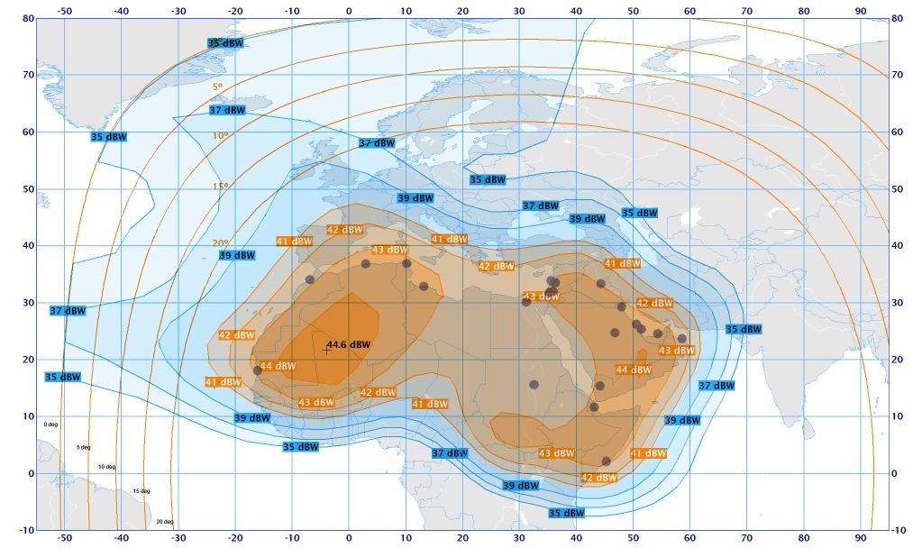 Arabsat 2B at 20.0°E footprint : Medium/High Power coverage maps
