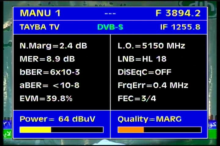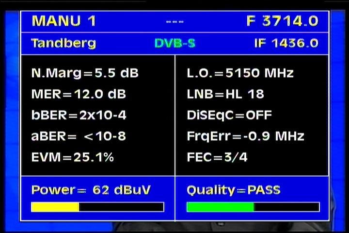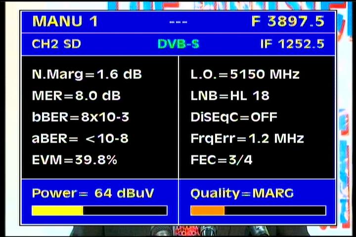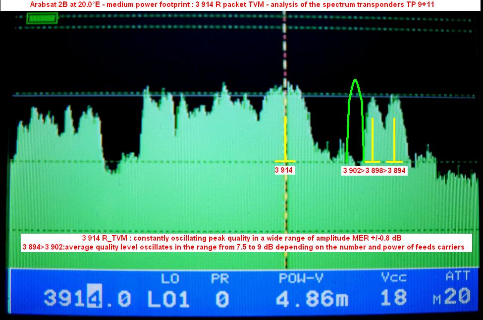 - 3 894>3 902:average quality level oscillates in the range from MER=7.5 to 9 dB depending on the number and power of