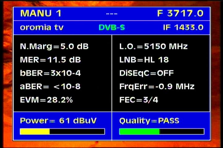 Arabsat 2B at 20.0°E - Medium power : 3 716 R Oromia TV