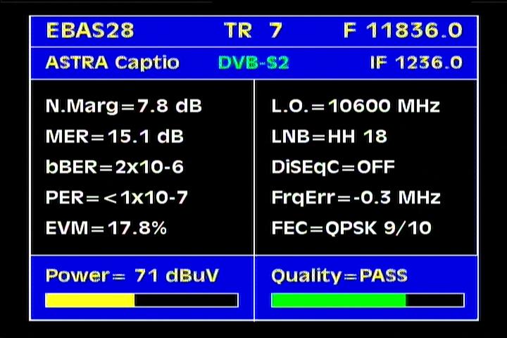 Astra 2C at 31.5 e _ footprint East beam_ 11 836 H Astra Caption test card _ DVB S2 PER diagnosticsAstra 2C at 31.5 e _ footprint East beam_ 11 836 H Astra Caption test card _ FEC EVM dataAstra 2C at 31.5 e _ footprint East beam_ 11 836 H Astra Caption test card _ SR data