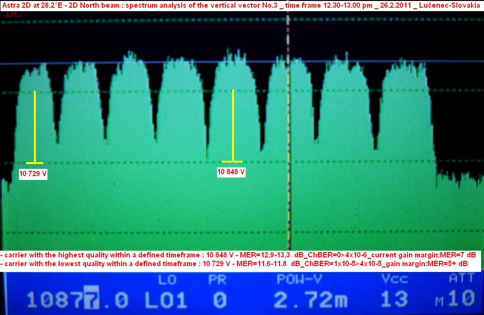Astra 2D at 28.2°E-sat dx : 10 714 > 10 936 MHz V+H & actual results of the measurements