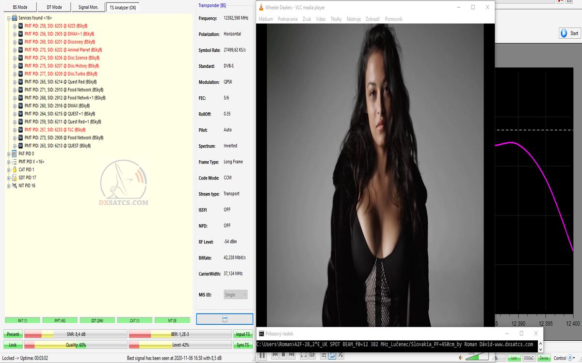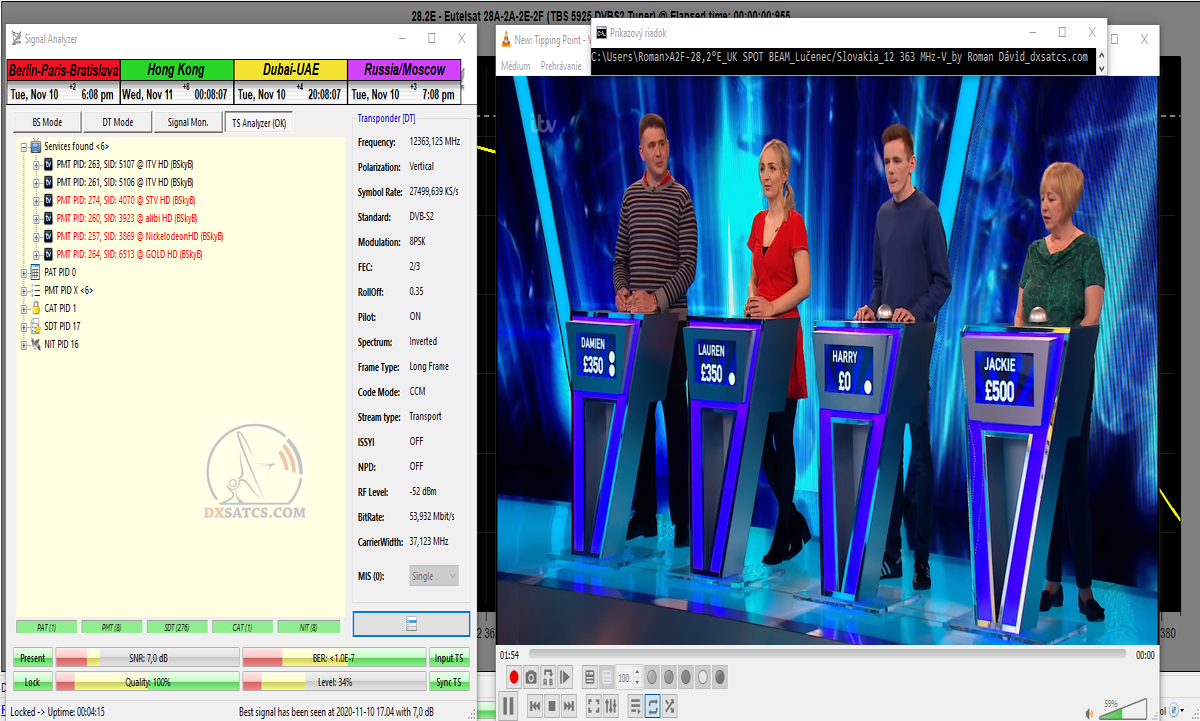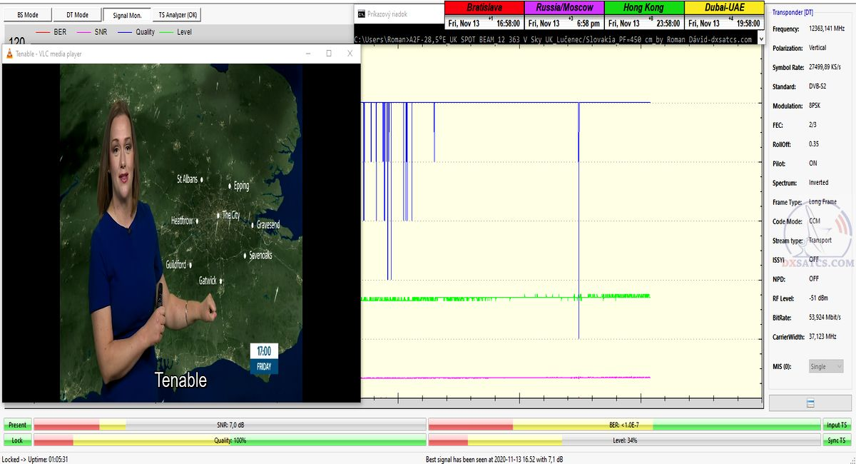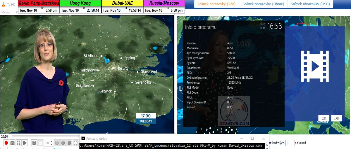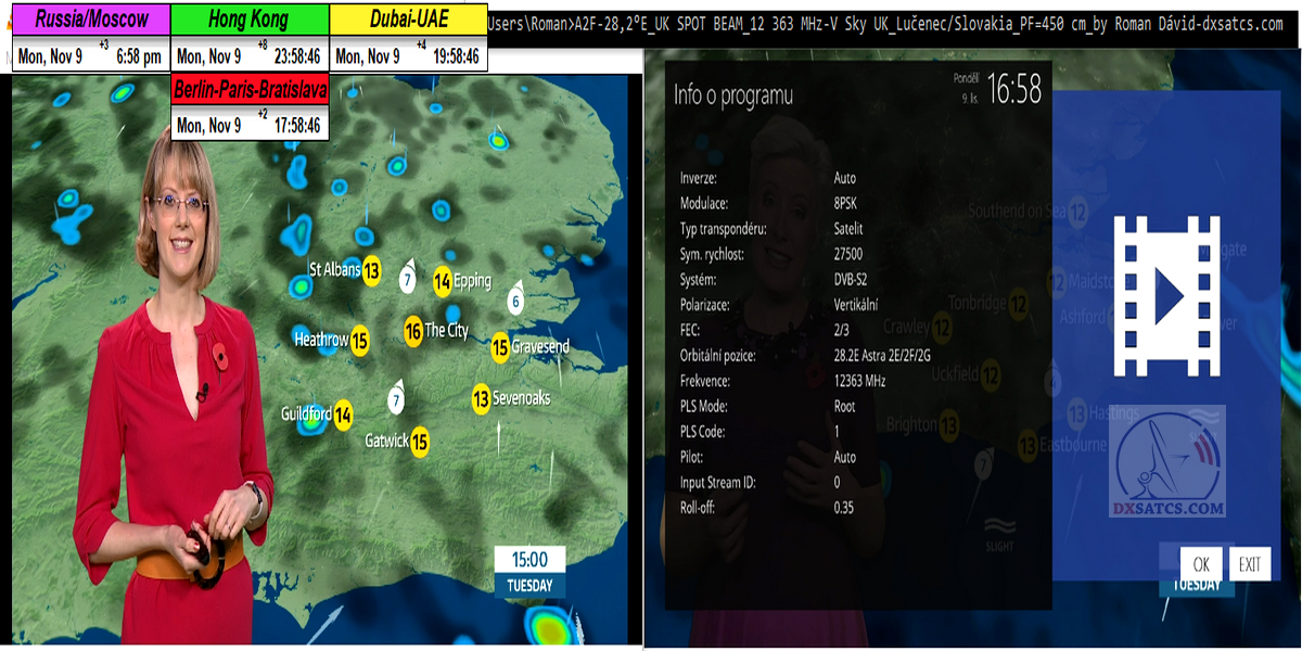 Obrazová a video demonštrácia príjmu z f=12 363 MHz v Lučenci : Sky Uk