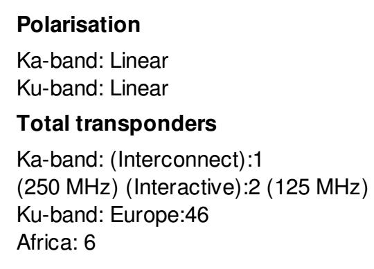 a Európskym downlinkových zväzkom KA pásma s názvom Astra 4A-Interconnect,ktorého výkonová škvrna/špička je ovšem sústredená