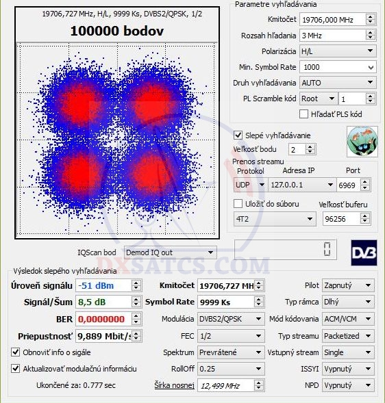 potom čo nasmeroval referenčný sekundárny radiant Prodelin 4.5m na λ=37,8° vd ,potvrdili správnosť výpočtov