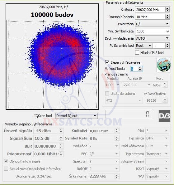 a na f=18 424 MHz identifikoval prítomnosť signálov telemetrie,sledovania a riadiacich povelov TT&C.V spektre