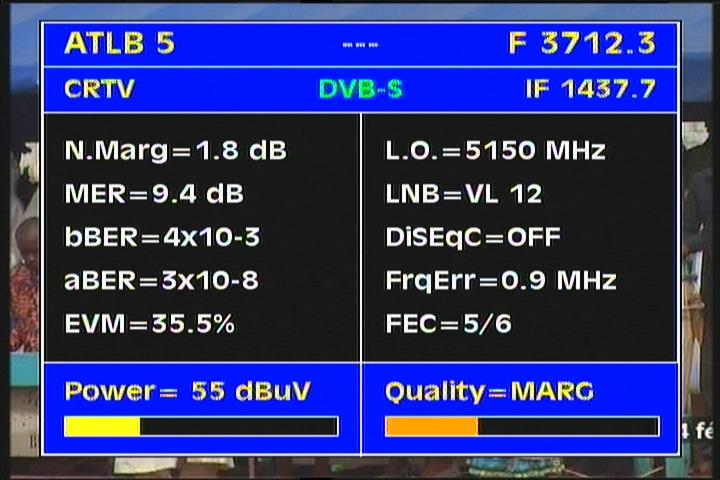 Atlantic Bird 3 at 5.0°W - panatlantic footprint : 4 155 L ORTB Benin