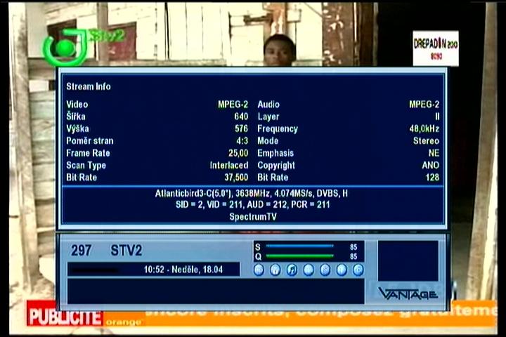 Atlantic Bird 3 at 5.0°W - panatlantic footprint : 3 638 R Packet STV
