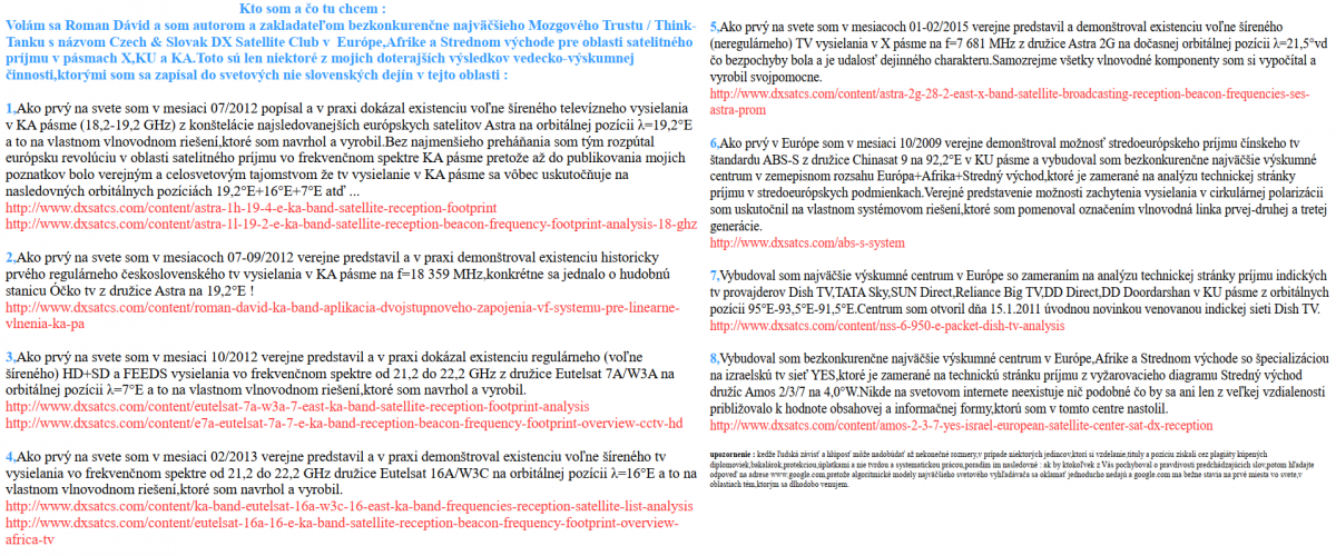 "Synchrónne nano-korekcie" do praxe satelitného príjmu.Túto technológiu vymyslel autor Roman Dávid a v praxi nepopierateľne