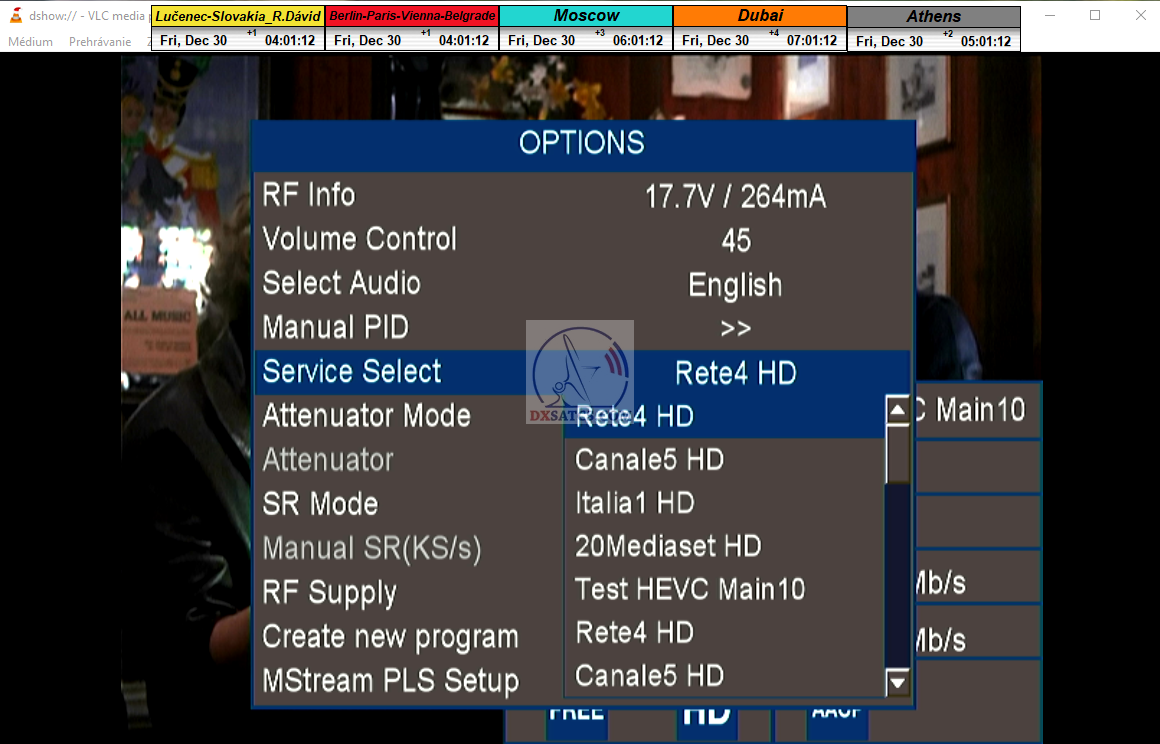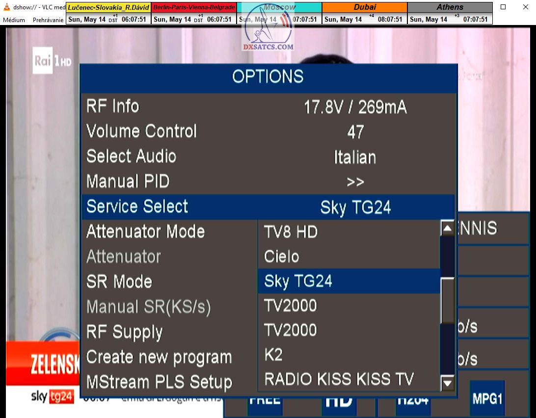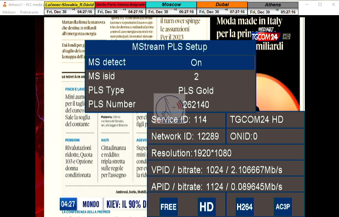 ►zámerne beží na pozadí meraní vysielanie TGCOM 24+R101 s kódom o aktuálnom čase,za účelom vylúčenia podvodov a verifikáciu správnosti času