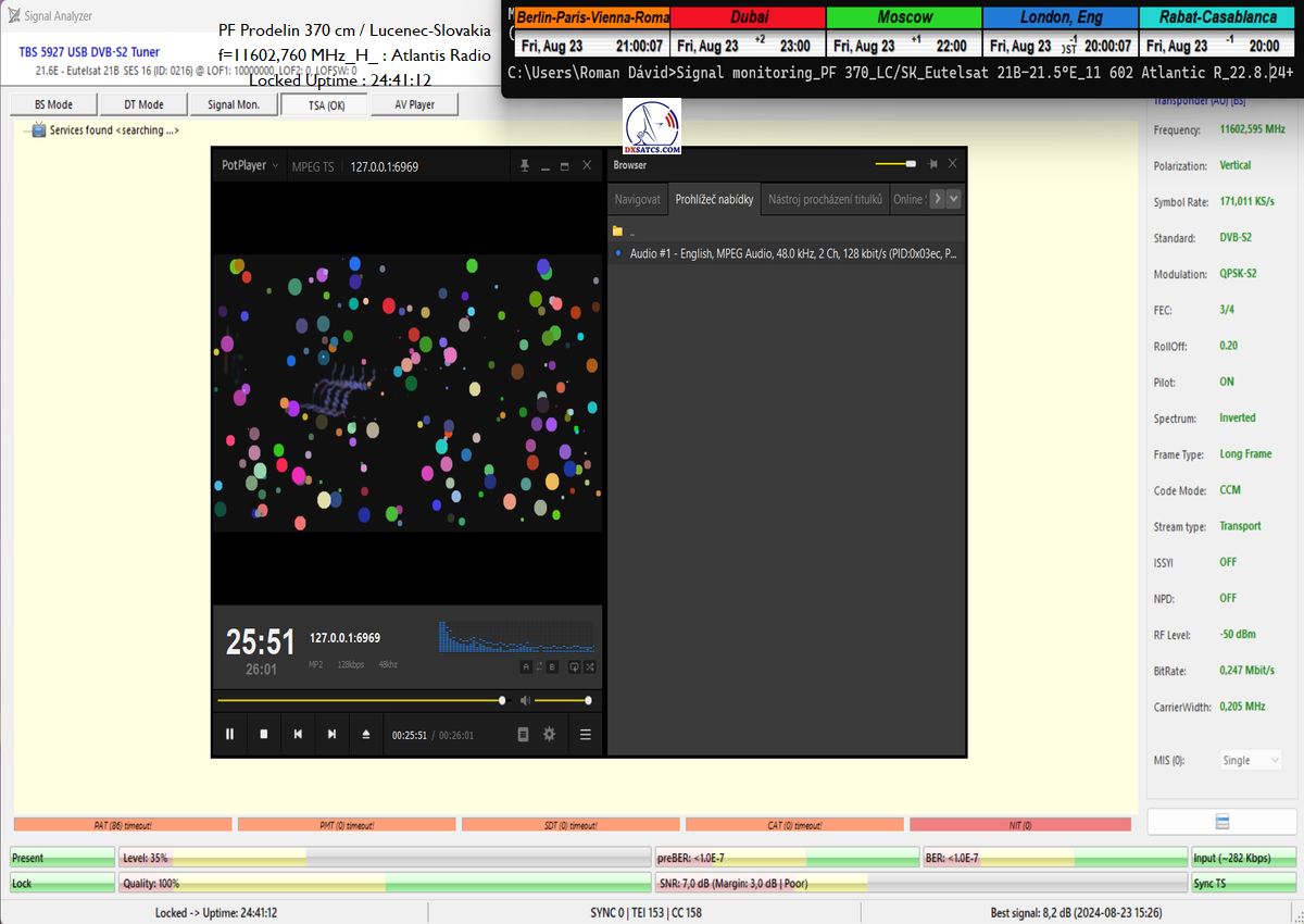 ►+50 hodín_ Priebežný stav v signálnom monitoringu dňa 22.8.2024 a online video ukážka z vysielania Rádia Atlantic_TSA OK