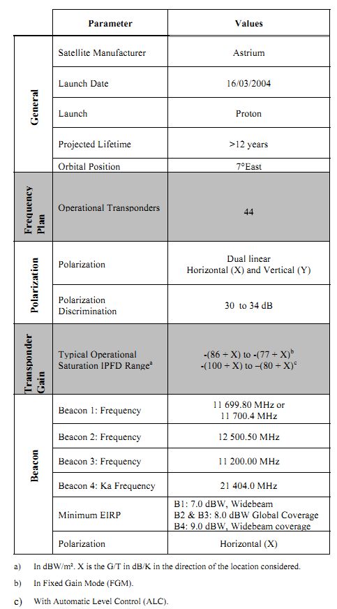 Eutelsat 7A ex W3A at 7° east - KA band reception data