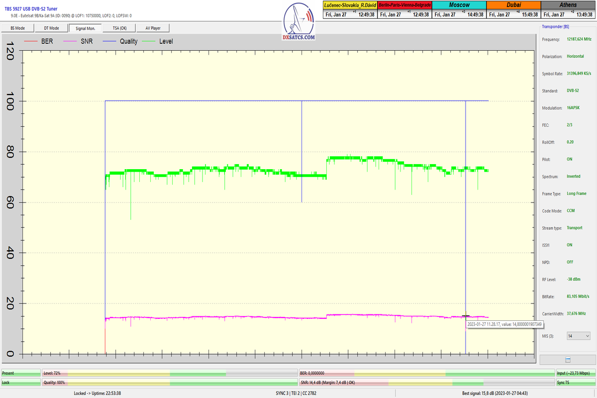 každý deň s jednou anomáliou pri SNR=14,8 dB dňa 27.1.2023 o 11:28 seč,ktorej dosah na celkovú stabilitu príjmu môžeme zanedbať ako irelevantný,