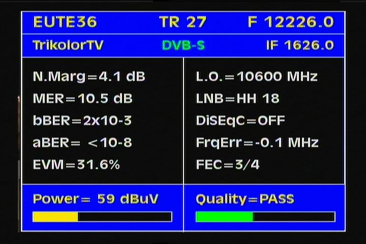Eutelsat W4 at 36,0°E - Russian footprint : 12 226 LC Packet Tricolor TV