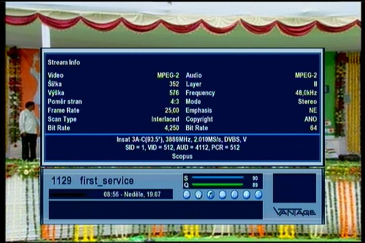 Insat 3A at 93,5°E - India C SPOT : feeds 3 889 V first_service / MPEG-2_Scopus Network Technologies