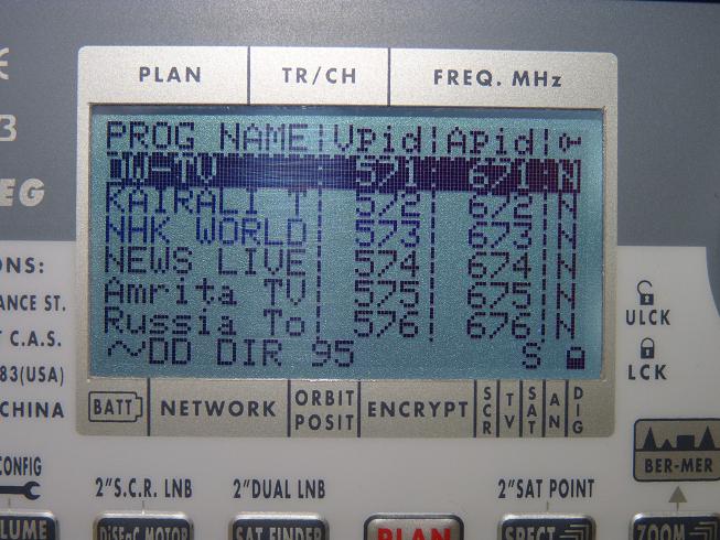 Insat 4B at 93.5°E Indian subcontinent beam : 11 669 V HDTV Packet SUN DTH Network India