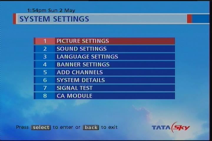 Insat 4A at 83.0°E : TATA Sky-Thomson receiver & NDS Videoguard decoder_menu