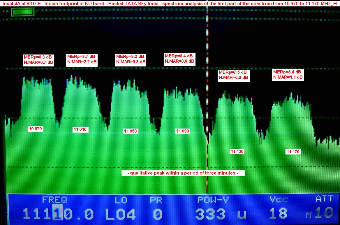 Insat 4A at 83.0°E-footprint in KU band-TATA Sky: first part of the spectrum>10 970-11 170 MHz