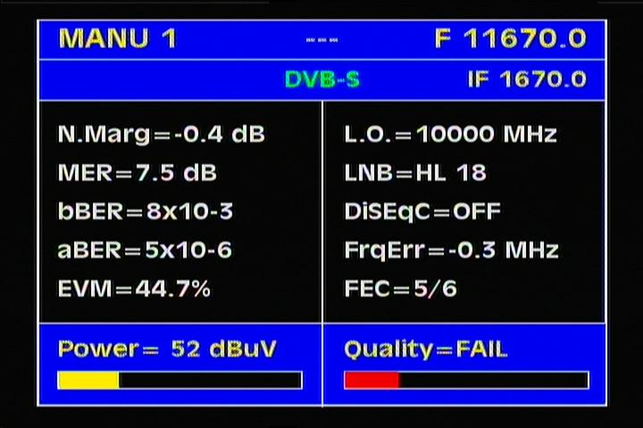 -- treshold levels for the FEC protocols :  3/4 > MER=4.0+ dB  ___  5/6 > MER=5.0+ dB --