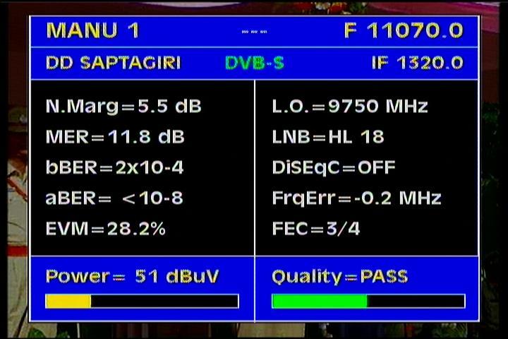Insat 4B at 93.5°E-DD Direct plus : live video recording of the instantaneous changes in the quality