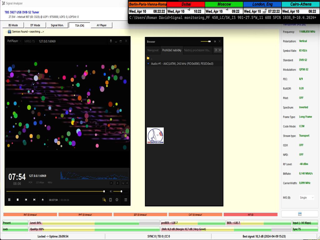 ►+54 hodín_ Priebežný stav v signálnom monitoringu dňa 2.4.2024 a online video ukážka z vysielania Rádia SPIN 1038 _ TSA OK