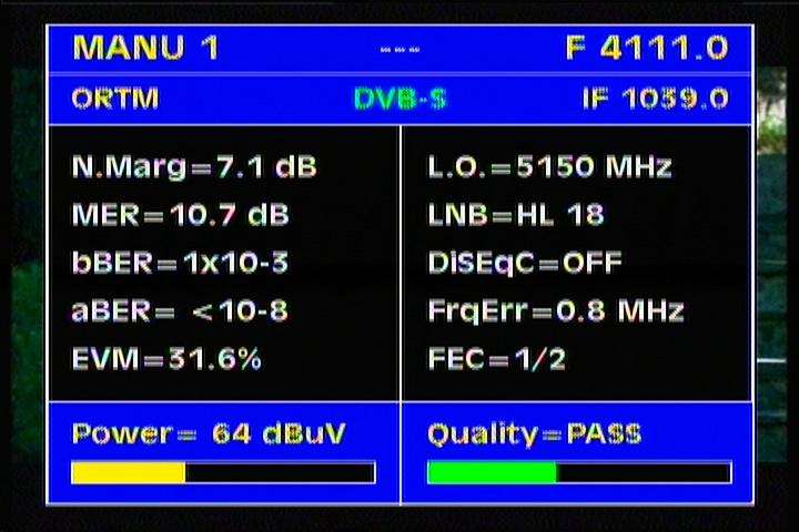 - MERp=10.7 dB _ N.MAR=7.1 dB : If we define the threshold for locking the carrier around the level of MER=2 dB