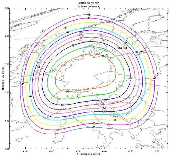Nakoľko družica Astra 3A na orbitálnej pozícii 23,5°E plni úlohu záložnej družice k sústave družíc ASTRA 1C -2C na 19E a v globále sa väčšina prenosov distribuje pre káblove rozvody v NEMECKU aj vyžarovaci diagram je pomerne úzko smerovaný do oblasti Strednej Európy kde sa sústredí maximum vyžiarenej energie EIRP viac ako 50 dBW a smerom na západ -Francúzsko,Španielsko.....Kanárske ostrovy úroveň vyžiarenej energie prudko klesá,čo súvisí s potrebou zvyšovania priemeru príjmacej antény. Z vlastnej skúsenosti /Las Palmas-Gran Canaria/ Vám možem povedať že s priemerom 240 cm sa na Kanárskych ostrovoch nedosiahol ani len náznak meratelnej signálnej kvality určenej úrovňou Modulačnej chyby MER v analyzovanom spektre na f=12 565 MHz-SkyLink , čiže jediným riešením ostáva osloviť v danej oblasti osobu,ktorá vlastní vysoko ziskovú príjmaciu antenu s priemerom od 300 do 500 cm /sú ich tam namontovaných desiatky kusov väčšinou na príjem ASTRY 2D 28,2 °E/ a navrhnúť jej či by príjem vo vašej oblasti nemohla vyskúšat a potom budete s istotou vedieť či sa v danej lokalite dá zachytiť paket SkyLInk alebo NIE. Je lepšie sa vopred presvedčiť na inej satelitnej zostave so zaručeným ziskom k priemeru antény či je vo vašej oblasti vôbec šanca zachytit paket SKyLink ako najskôr investovať 3-5000 EUR do kúpy antény a potom nezachytit NIČ.