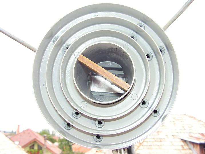 Kathrein UAS 231 feedhorn a polarizacna vyhybka OMT s rucne polohovatelnou SKEW hodnotou c1Kathrein UAS 231 detail do vnutra vstupneho vlnovodu  c4Kathrein UAS 231 detail na ozarovac urceny pre stredove anteny s pomerom fD od 037 do 042  c3