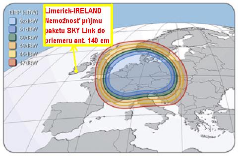 Na Vašej web stránke www.dxsatcs.com som sa dočítal o možnosti príjmu slovenských a českých programov prostredníctvom Digi tv v Írsku, konkrétne v Dubline. Chcel by som sa Vás opýtať, či je možný príjem aj v Limerick city, to je mesto asi 200km západne od Dublinu, akú veľkú parabolu mám použiť, a aký typ LNB.