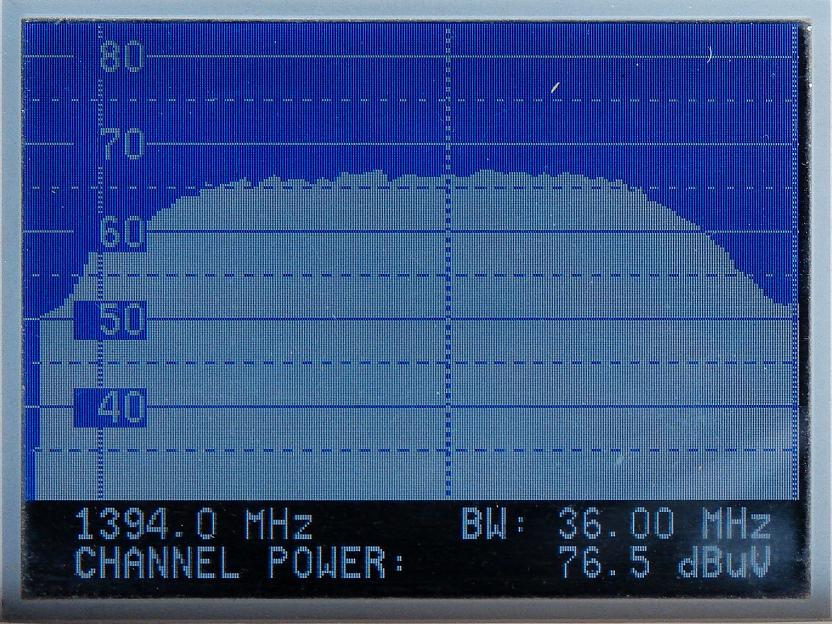 ekvivalentných ziskových hladín antény v celom orbitálnom rozsahu 40° (pri teoretickom predpoklade rovnakej hladiny príchodzieho