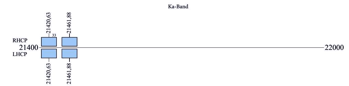 Nilesat 201-7°W-KA band-downlink-frequency plan-telemetry : KA band _ 21 400 - 22 000 MHz / R+LHCP /