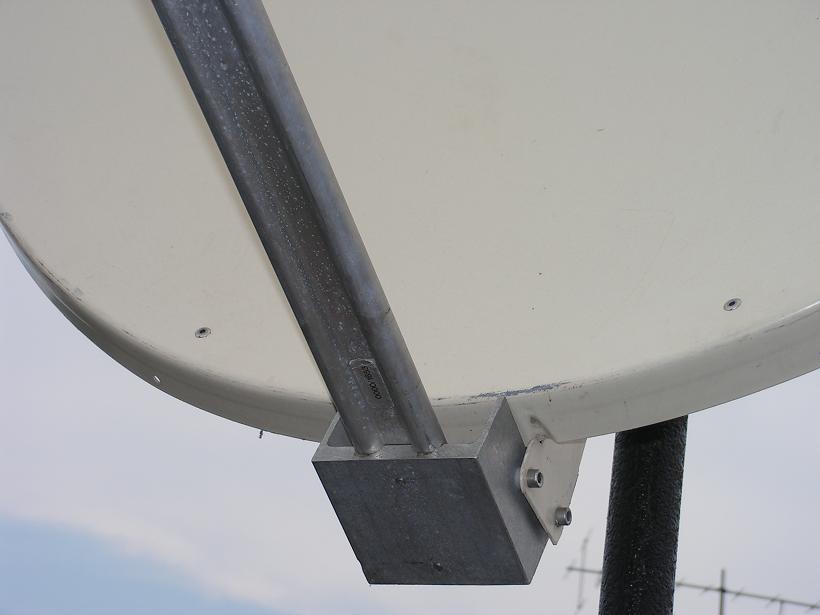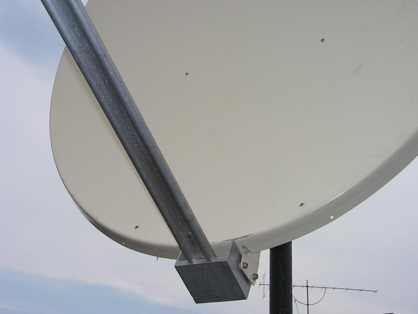 Technisat SATMAN 1200 RZ celny pohlad s UNYSAT B 13E a 19ETechnisat SATMAN 1200 RZ detail na nitovane spoje uchytu a reflektoraTechnisat SATMAN 1200 RZ detail na prepojenie nosneho ramena