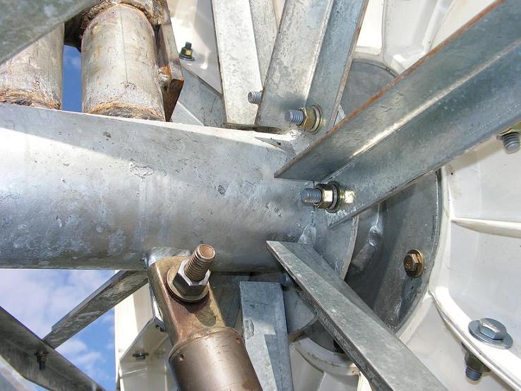 PF Prodelin 3.7M AZ EL ANT detail na nosnu strukturu reflektora CENTRAL HUB  11PF Prodelin 3.7M AZ EL ANT detail na nosnu strukturu reflektora CENTRAL HUB  12PF Prodelin 3.7M AZ EL ANT uchytenie motora o CENTRAL HUB  13
