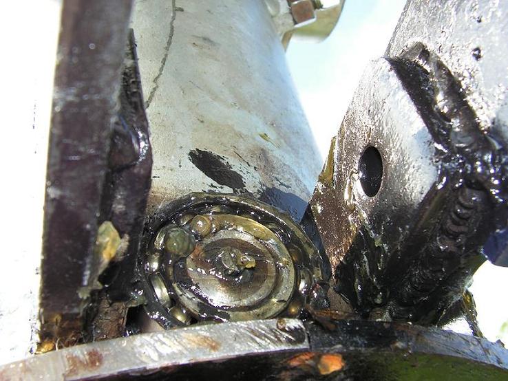 Pôvodne fixné prevedenie stredového anténneho systému s manuálnym nastavovaním AZ/EL uhla,ktoré prakticky vylučovalo pohodlnú obsluhu celého systému jednou osobou /dve osoby len so značnou námahou dokázali otáčať celou anténou čo platilo aj pre polohovanie elevačného uhla/, bolo nutné kompletne prebudovať,kde v konečnom dôsledku môže anténu bez akejkoľvek námahy otáčať a fixovať jej polohu každá osoba staršia 10. rokov. Na anténny tubus boli prizvárané na mieru vysústružené osky v počte 5 ks , na ktoré som na pevno nasadil ložiská,ktorých polohu som fixoval závlačkou.Celý antény systém som žeriavom vydvihol o 2 cm a okolo nosnej rúry bola prizváraná na mieru vysústružená oceľová obruč-dráha o hrúbke 12 mm , po ktorej sa pohybuje v krúživom pohybe 5 ks ložísk , ktorých poloha je samozrejme fixovaná maticami na tubuse antény.Nakoľko anténny systém je kvôli ťažisku a diferencii okolo 2 mm medzi nosnou rúrou a vnútorným priemerom anténneho tubusu vždy mierne naklonený do predu , funkciu polohovania v azimutálnom smere vždy preberajú 2-3 ložíská v závislosti od toho na ktorú stranu je anténa natočená.V pôvodnom návrhu manuálneho polohovania elevačného uhla je prakticky vylúčená jej každodenná obsluha pomocou jednej osoby.Funkciu polohovania EL uhla som vyriešil kombináciou tiahla 36" s protizávažím o hmotnosti okolo 150 kg,ktoré je umiestnené v klietke na princípe páky o dĺžke ramena 150 cm,ktorá spoľahlivo plní funkciu.