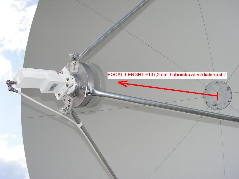 Nakoľko som si objednal optické prevedenie určené pre pásmo KU,musel som dodatočne vyrobiť z duralovej pásoviny držiaky 4. ramien na ktoré som pripevnil vonkajšiu signálnu jednotku pre pásmo C 3,4-4,2 GHz po jednoznačnom zadefinovaní ohniskovej vzdialenosti 137,2 cm.Po prvotných meraniach prírastku signálnej kvality v porovnaní reflektorových plôch 300-370 cm kvalitatívne činiteľe MER,chBER,NM.... dosahovali výrazný prírastok v prepočte ne jednotku Modulačnej chyby MER v rozsahu +2-5 dB v závislosti od výberu QPSK nosnej vo frekvenčnom spektre pri satelitoch ako sú INSAT 3A/4B na 93,5°E , Yamal 201 na 90,0°E alebo Express AM 2 na 80,0°E !