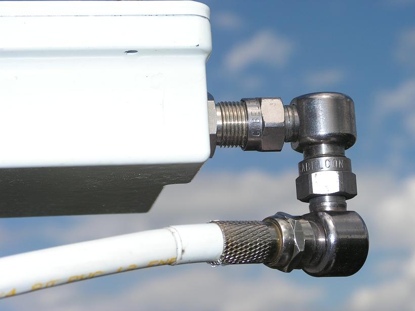 PF Prodelin 3.7M AZ EL ANT profesionalne uhlove konektory Cabelcon  04PF Prodelin 3.7M AZ EL ANT detail na uchytenie ramien optiky  05PF Prodelin 3.7M AZ EL ANT vonkajsia signalna jednotka na prijem v C pasme  06