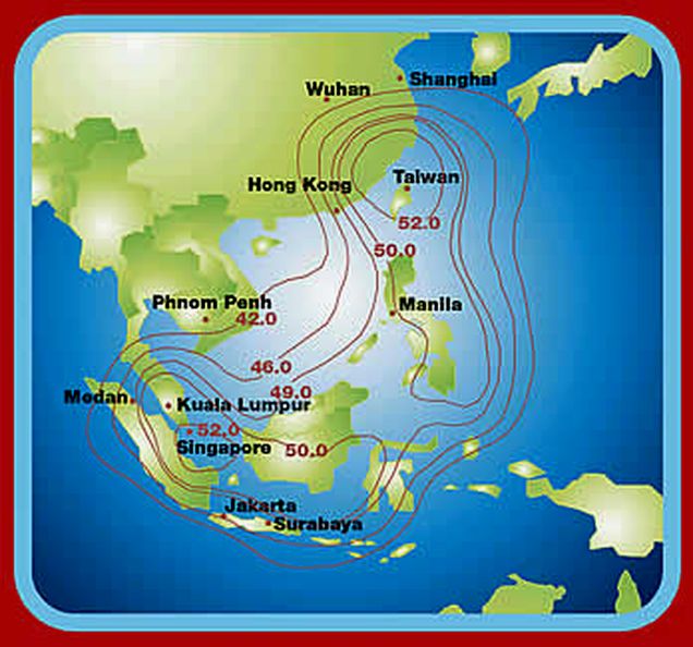 ST 1 at 88.0°E - K1/KU footprint South Asia : measurements at the center Macau - 60 km w of Hong Kong